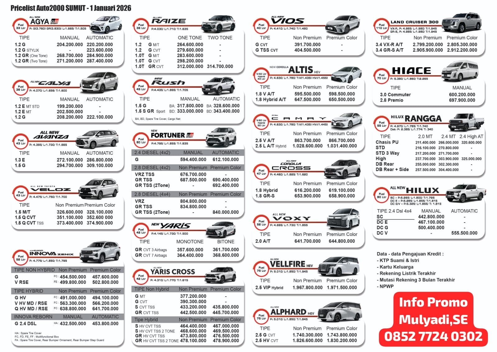 Daftar Harga Kredit dan Cash / Tunai All New Yaris Cross